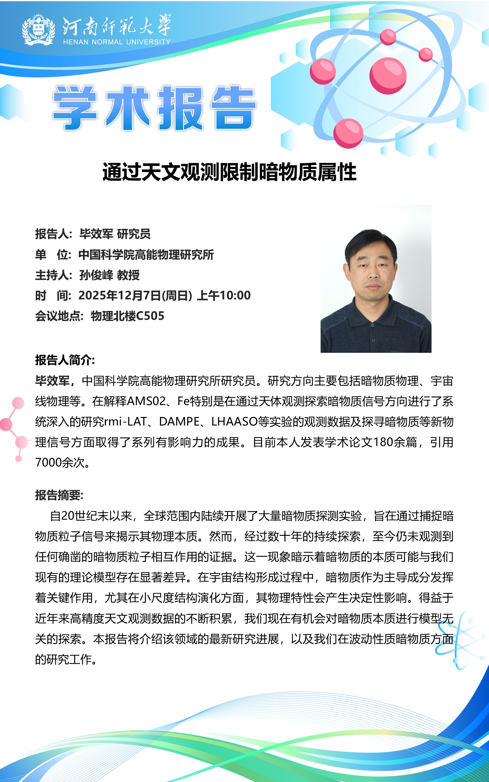 学术报告:通过天文观测限制暗物质属性