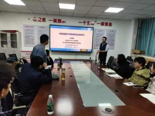 羧酸酯是一类广泛存在于自然界的有机化合物,也是一种重要的大宗化工产品。孔端阳教授围绕“羧酸酯的不对称转化反应研究”,从羧酸酯的来源与应用意义、不对称转化中的机遇与挑战等方面分享了他在羧酸酯不对称转化反应研究领域的最新成果。报告结束后,孔端阳教授与参会师生进行了细致、深入的讨论交流。通过这次讲座的交流与学习,我院师生受益颇多。