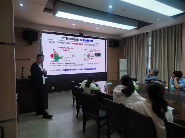 李明乐教授围绕光动力治疗这一主题,展开介绍了其团队开发的用于光动治疗的新型分子,及其构建策略。针对光动治疗这一研究领域的瓶颈问题进行了分析,并提出了相应的应对策略。