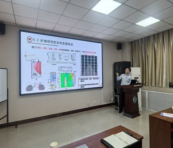 在交流环节,与会师生围绕析锂检测方法的实际应用场景展开讨论,针对析锂检测与电池安全性的关系等问题提问。闫崇教授一一进行讨论与分析,其从基础理论解析到创新方法研发的逻辑,为我校材料、电化学等学科科研提供范式,同时为学生科研选题与方法训练提供方向,有力推动本校相关领域研究再上新台阶。