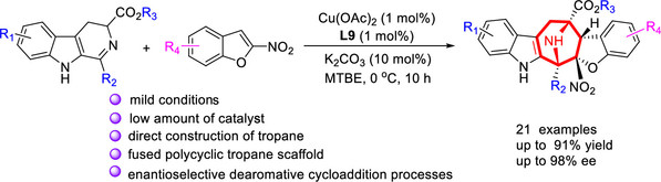3. Zhen Wang, Dong-Chao Wang*, Ming-Sheng Xie, Gui-Rong Qu, Hai-Ming Guo*, Enantioselective Synthesis of Fused Polycyclic Tropanes via Dearomative [3 + 2] Cycloaddition Reactions of 2-Nitrobenzofurans,Org. Lett. 2020, 1, 164-167.