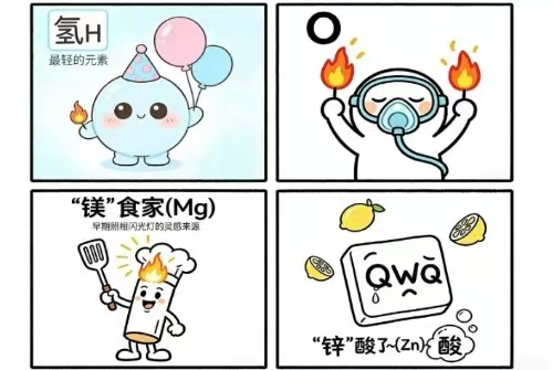 本次大赛共收到来自全校各院系的参赛作品336份,覆盖面广,作品创意纷呈,充分展现了同学们的创作热情与多元才华。参赛选手围绕氢、氧、碳等化学元素的特性展开设计,将抽象的化学知识转化为生动形象的表情包作品。有的作品以氢元素为原型,用活泼灵动的卡通形象突出其最轻、最活泼的特点;有的作品将氧元素拟人化,生动体现其支持燃烧、维持生命的重要性质。除此之外,还有创意满满的趣味设计,以镁元素为核心的《‘镁’食家》表情包,结合镁燃烧发光的特性,塑造出头顶火焰的厨师形象,既有“镁”与“美”的谐音,也呼应了它作为早期闪光灯灵感来源的特点;以锌元素为主题的《‘锌’酸了》表情包,利用锌与酸反应产气的性质,搭配委屈落泪的形象和柠檬元素,巧妙玩梗“心酸”,让化学知识变得鲜活有趣。参赛作品主题鲜明、创意新颖,既体现了严谨的化学学科知识,又展现了同学们的审美与巧思。