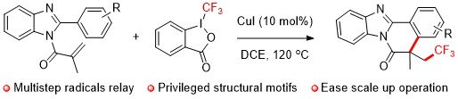 53. Sun, K.;* Li, G.; Guo, S.; Zhang, Z.;* Zhang, G.,* Copper-catalyzed radical cascade cyclization for synthesis of CF3-containing tetracyclic benzimidazo[2,1-a]iso-quinolin-6(5H)-ones. Org. Biomol. Chem., 2021, 19, 375-378. https://doi.org/10.1039/d0ob02210a