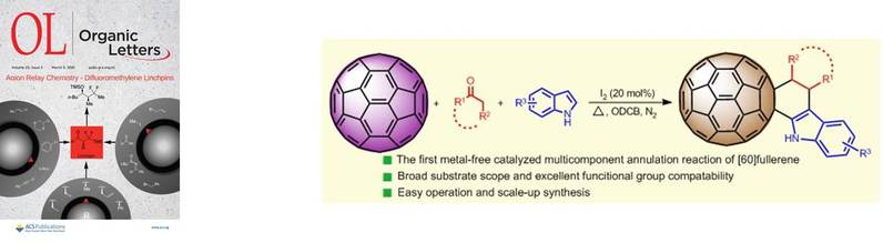 20. Jinliang Ma, Tong-Xin Liu,* Pengling Zhang, Xuna Zhao, Guisheng Zhang* Metal-Free-Catalyzed Three-Component [2+2+2] Annulation Reaction of [60]Fullerene, Ketones, and Indoles: Access to Diverse [60]Fullerene-Fused 1,2-Tetrahydrocarbazoles Org. Lett., 2021, 23, 1775−1781.