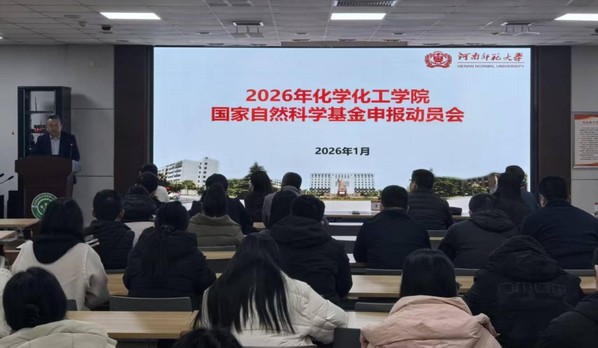 1月13日下午,我院在化学北楼五楼会议室召开2026年度国家自然科学基金申报动员会。校党委常委、副校长聂国兴,科技处处长仉华、副处长焦照勇及学院领导班子成员、全院教职工参加了本次会议,会议由化学化工学院执行院长白正宇主持。