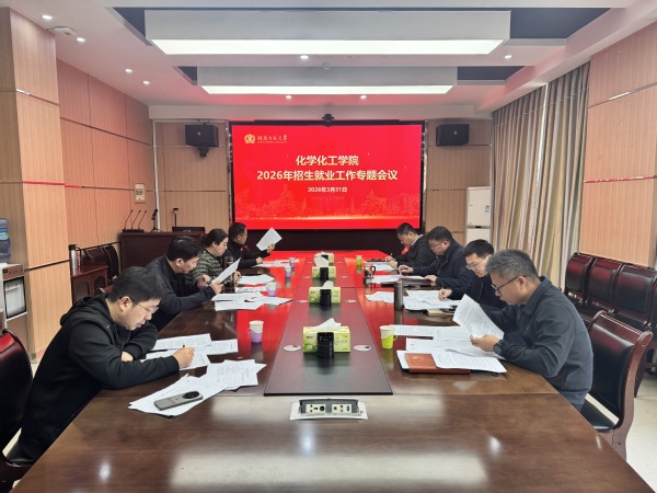 3月31日上午,我院在化学北楼N114会议室召开2026年招生就业工作专题会议。学院全体党政领导参加会议。会议由院长江智勇主持。