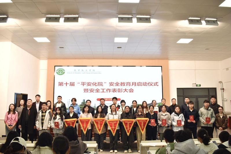 大会在庄严的国歌中拉开帷幕。学院党委副书记李朝阳宣读《化学化工学院第十届“平安化院”安全教育月实施方案》,并对系列活动做全面部署;副院长党治国宣读上学年安全教育工作表彰决定及授奖名单,与会领导共同为受表彰代表颁发荣誉证书和锦旗。安全工作先进个人代表崔金淼、安全先锋宿舍代表孙心玲先后发言,呼吁同学们积极参与安全教育月活动,学习安全知识、掌握防范技能、筑牢安全观念,做好安全行为示范者与安全环境守护者。学院党委书记李浩向获得表彰的先进集体和先进个人表示祝贺,对大家的辛勤工作表示感谢,并强调一要加强安全知识学习,营造安全文化氛围;二要强化安全实践训练,健全安全管理体系;三要注重知行合一,凝聚安全发展共识。