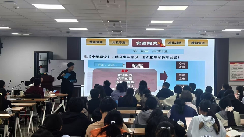 为扎实推进教育部师范教育协同提质计划,响应学校“行知杯”教师课堂教学能力大赛的工作部署,深化“俊甫计划”卓越教师班育人成效,3月30日晚,化学化工学院在五楼会议室举办“行知杯”教学技能比赛决赛暨“俊甫计划”卓越教师班学员遴选活动。学院党委副书记朱进、化学教育所刘玉荣教授等老师受邀担任评委。 本次比赛以“夯实教学基本功,推进教育数字化”为主题,经过初赛的激烈角逐,共16名选手进入决赛。决赛场上,选手们自信登台、各展风采,围绕小学科学课程内容,精心设计教学环节,灵活运用板书、多媒体及实验演示等手段,展现出扎实的专业功底和良好的课堂驾驭能力。评委老师从教学设计、数字化应用、科学思维培养等方面进行提问,选手们沉着应答,现场气氛紧张而热烈。刘玉荣结合选手整体表现进行了综合点评,她充分肯定了同学们在教学设计、语言表达、板书规范及数字化手段运用等方面的进步,同时从科学概念精准度、课堂互动有效性、时间把控等方面提出了中肯建议,勉励同学们以赛促练、以练促教,不断提升教学胜任力。朱进作总结讲话,他指出本次比赛与“俊甫计划”卓越教师班学员遴选同向发力,也是学院落实卓越人才培养“一目标,两作用,五结合”育人思路的生动实践。他希望全体师范生以优秀选手为榜样,夯实教学基本功,主动拥抱教育数字化,努力成长为未来化学及科学教育领域的基础教育名师。 本次比赛既是对师范生教学能力的全面检验,也是“俊甫计划”卓越教师班新学员遴选的重要抓手。学院将以此次比赛为契机,持续深化师范生教学技能训练,推动“俊甫计划”卓越教师型学员培养走深走实,为培养高素质专业化创新型教师队伍奠定坚实基础。 (化学化工学院 张艳) |