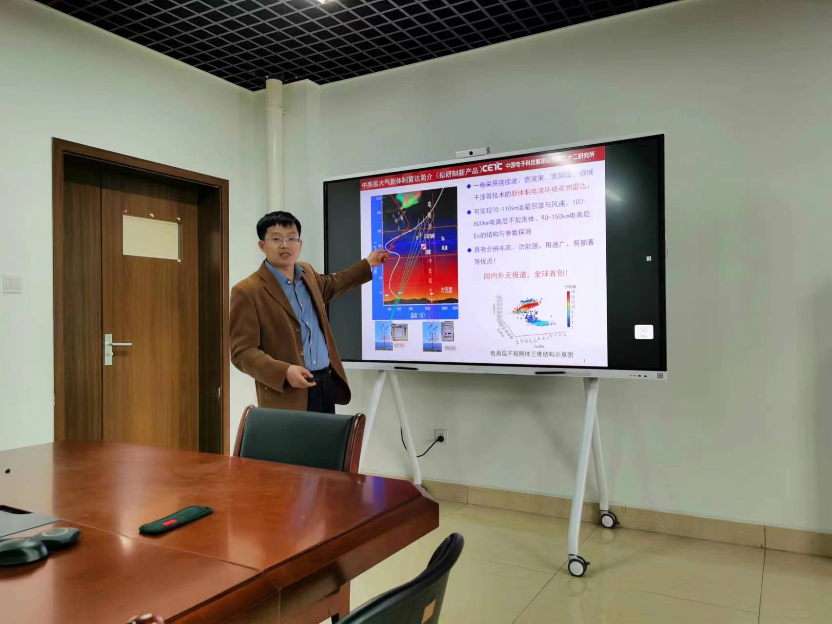 首先,丁宗华作关于中高层大气新体制雷达建设规划的报告,介绍了新体制雷达的关键技术参数及部署计划;然后,双方就新体制雷达的科学目标和技术要求展开了讨论;最后,双方表达了就申报重大项目、研究生联合培养等事宜进行深入合作的愿望。