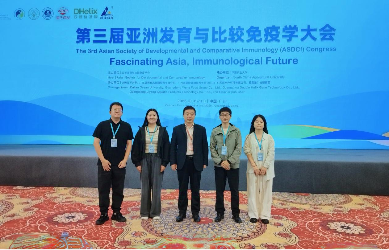 10月31日至11月3日,“第三届亚洲发育与比较免疫学大会”在广东省广州市顺利召开。大会由亚洲发育与比较免疫学会主办,华南农业大学承办,大连海洋大学等单位协办。大会共吸引了来自国内外500余名科研人员参会,我院孔祥会教授、朱雷副教授、赵燕静博士、高峰博士及研究生杜争艳参加了此次会议。