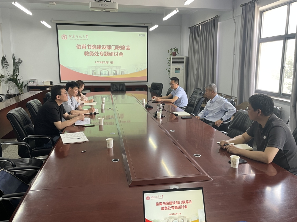 为贯彻落实“俊甫书院建设工作推进会暨运行模式优化升级启动会”的会议精神,快速推进拔尖创新人才培养方案制定、通识课程建设、相关配套政策制定等工作,5月13日上午俊甫书院党总支书记兼常务副院长宋京双带领班子成员到教务处开展专题调研。教务处处长梁存良及班子成员参加调研会。