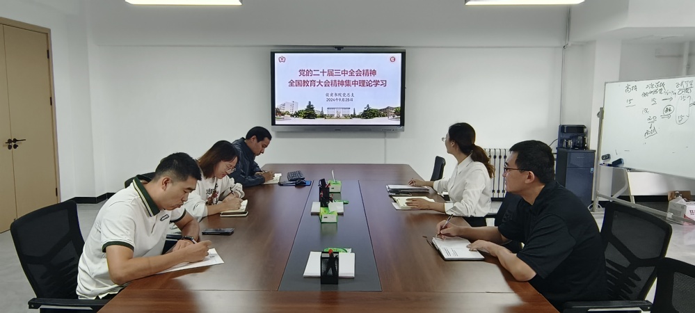 9月24日下午,俊甫书院党总支在书院109会议室召开集体学习研讨会,深入学习党的二十届三中全会精神和全国教育大会精神。书院全体教职工参加。会议由书院党总支副书记刘宁主持。