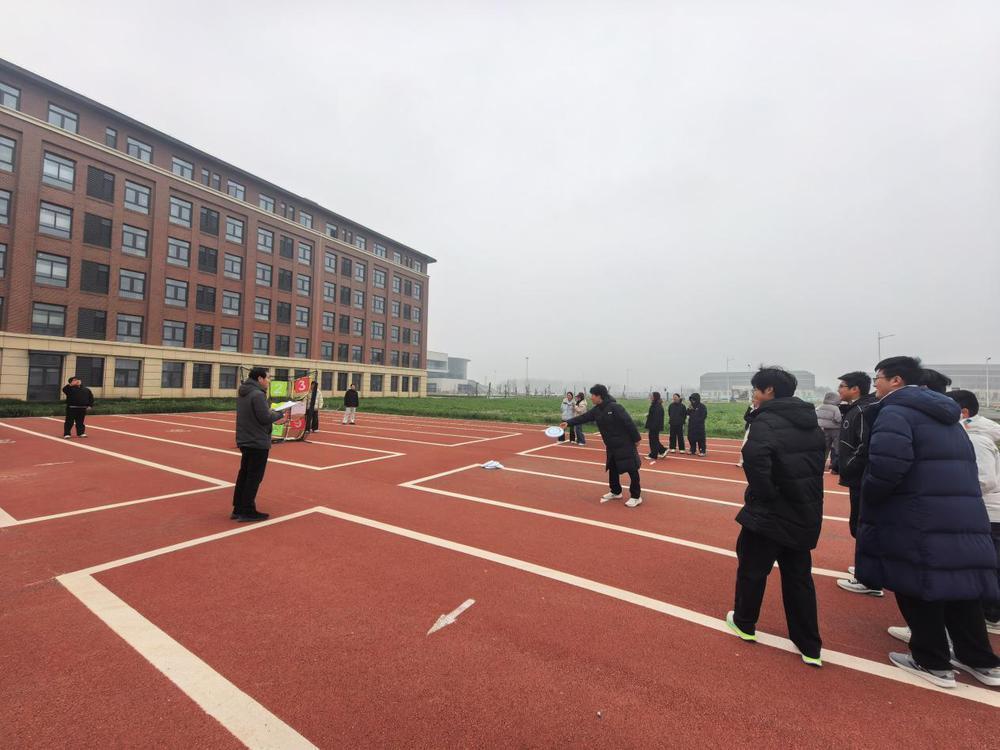 本次活动精心设计了“飞盘打靶”与“旱地龙舟”两项集趣味性、竞技性与协作性于一体的集体运动。在“飞盘打靶”区域,同学们分组竞技,瞄准、投掷、奔跑,在一次次的出手间不仅锻炼了身体的协调性与灵活性,更在专注与放松的切换中体会到了心理的平衡之道。随后的“旱地龙舟”项目则将现场气氛推向高潮,队员们骑跨在充气龙舟上,喊着整齐的口号,步伐一致、齐心发力。只有全组同频共振,龙舟才能顺利前行,这一项目生动诠释了沟通与信任在团队中的重要性。活动现场加油声、欢笑声此起彼伏,同学们在挥洒汗水中释放压力,在默契配合中增进情谊。