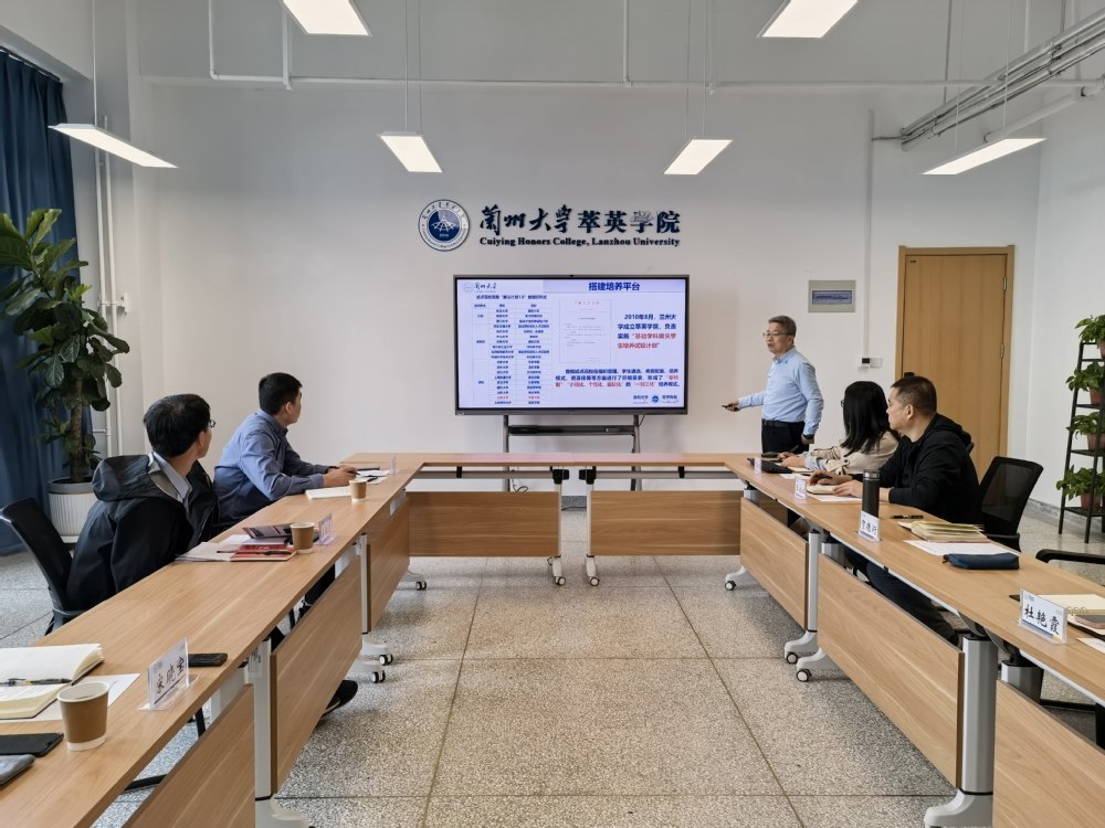 贺德衍详细介绍了萃英学院“三制三化”培养模式及“四个平台”课程体系,分享了“学院牵头、专业学院协同、职能部门支持”的管理运行模式,以及在跨学科导师选配、学分互认、实验室轮转等方面的制度安排。他还系统介绍了学生“动态进出”选拔机制、小班化教学、暑期小学期设置、特色通识课程建设经验,以及荣誉学生认定、推免综合评价等具体做法。随后,双方围绕双院协同育人工作机制、特色通识课程建设、导师制管理办法、学生评价与推荐免试攻读研究生制度、国际化培养和支持保障等具体工作进行深入交流,共同探讨拔尖人才培养的新思路和新举措。