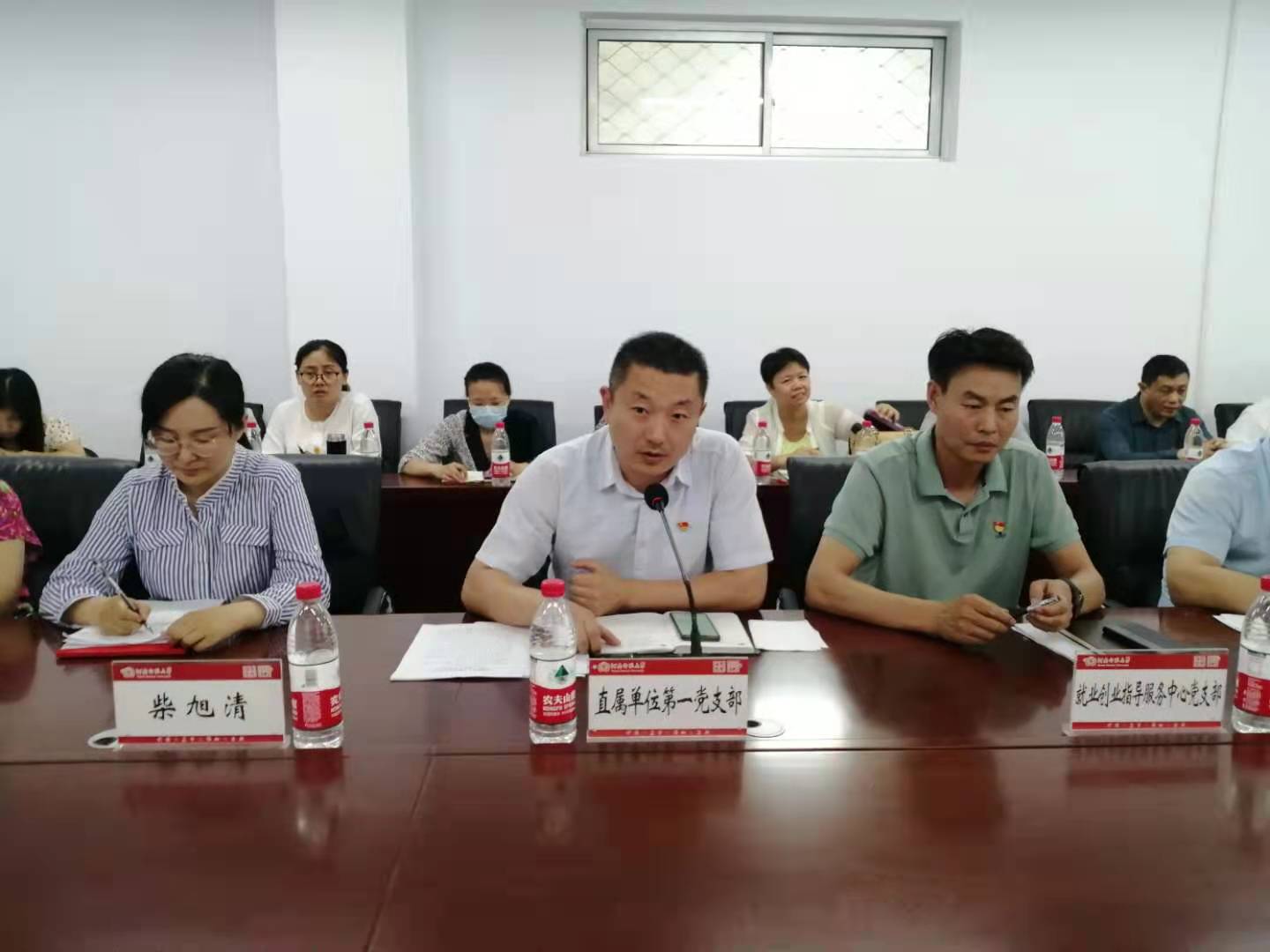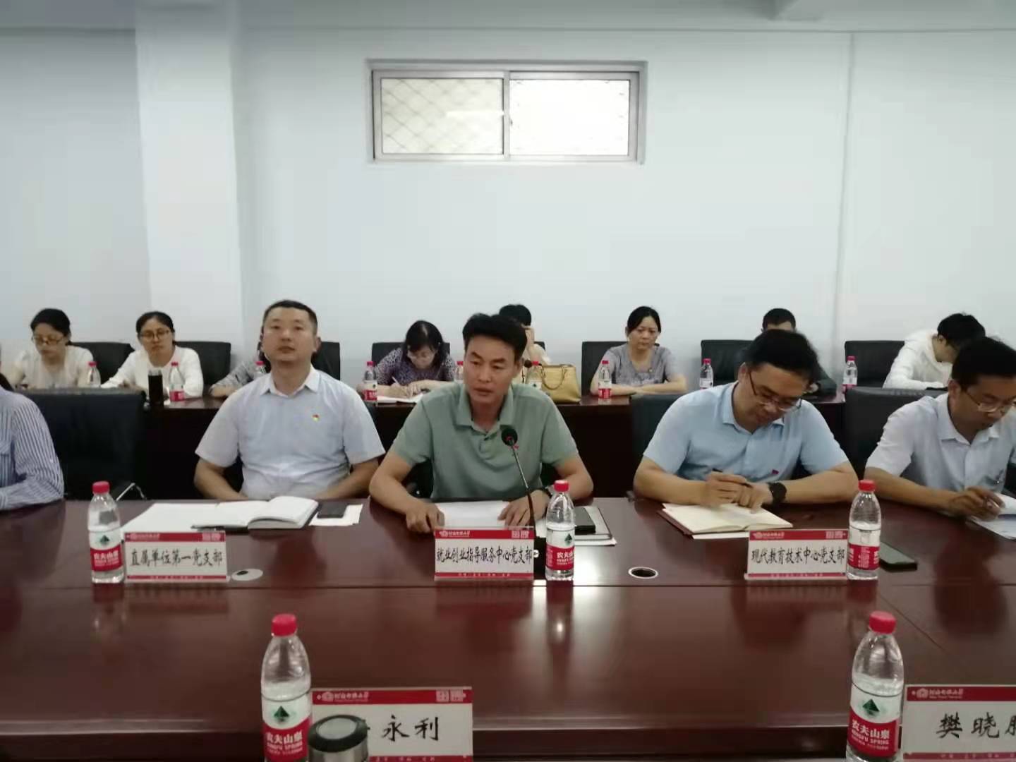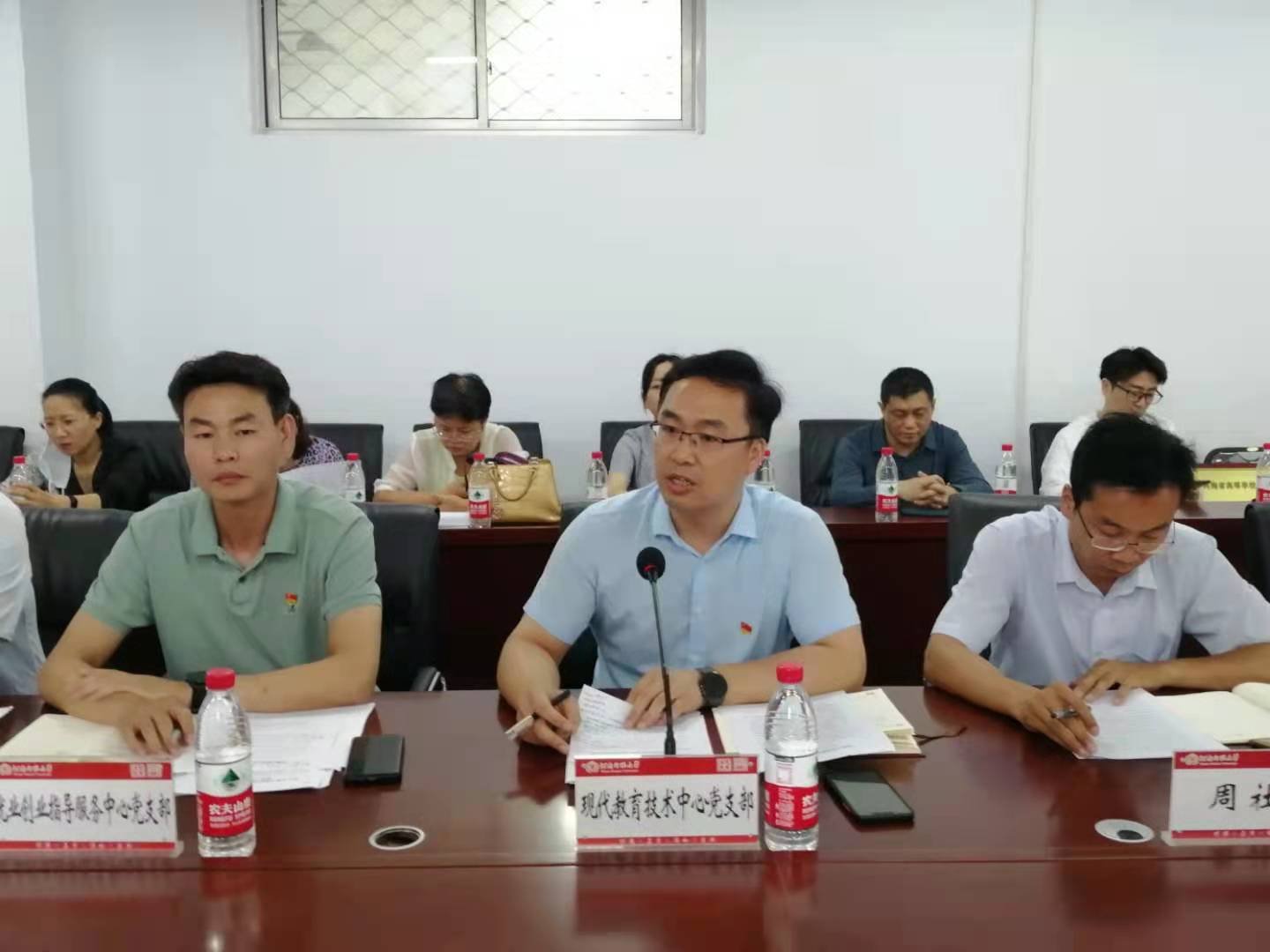 7月8日下午,直属单位党委在文渊楼234会议室召开党建工作经验交流会。全体党委委员、纪委委员、支部书记和支部委员,受表彰的先进个人参加会议。会议由直属单位党委副书记兼纪委书记朱守宏主持。党委统战部党外知识分子科科长樊晓腾代表学校党史学习教育第四督导组参加会议并指导工作。