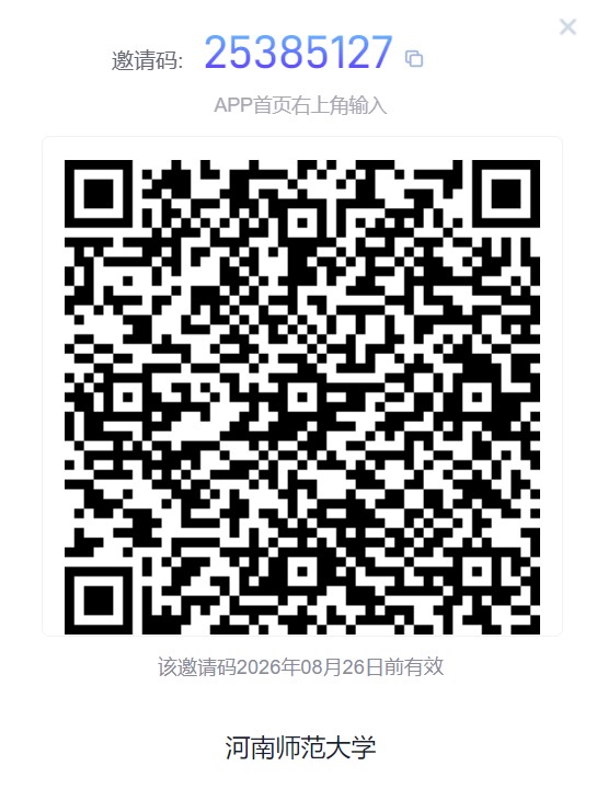 2.电脑端:访问网址https://henannu.fanya.chaoxing.com/portal,在页面右上角使用手机号或者教职工账号登录,进入“教学空间”,“课程”-“右上角邀请码”,输入25385127,进入我校专属班级进行学习。