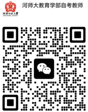 1.所有考生务必扫码添加负责实践性环节考核教师的微信——河师大教育学部自考教师,并按照要求完成相应任务。若未在规定时限内完成相关事宜,由此产生的一切后果将由本人承担。
