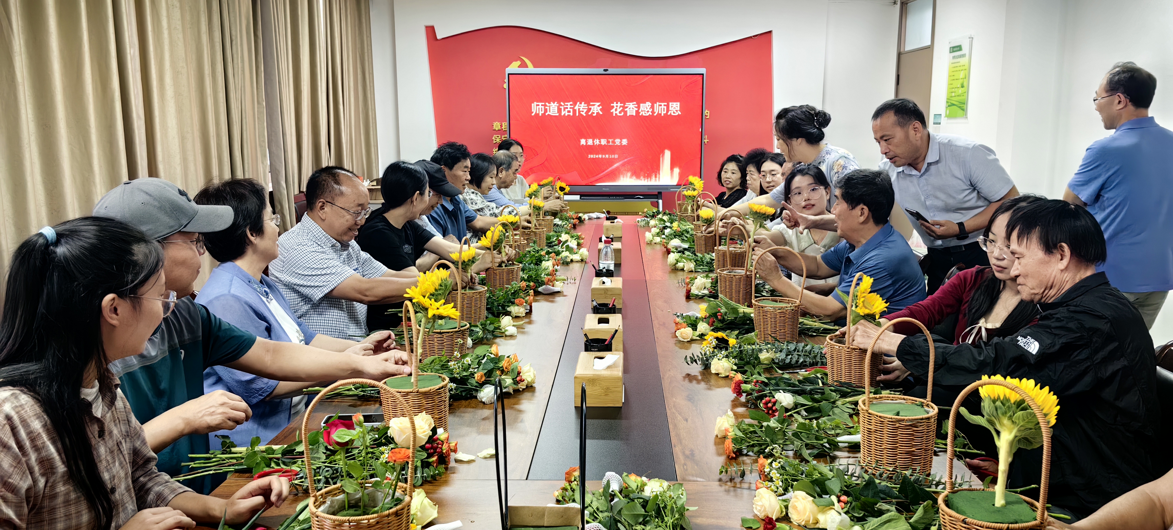 在认真学习贯彻党的二十大和二十届二中、三中全会精神之际,我们迎来了第40个教师节。离退休职工党委紧跟学校部署,积极开展走访慰问、日常服务、学生插花献花等活动,弘扬教育家精神,大力营造尊师重教的良好氛围,宣传学校新时代高素质专业化教师队伍整体状况和突出成就,让广大离退休教师融入学校发展之中共享节日快乐。9月10日下午,在离退休处党员活动室开展了“师道话传承 花香感师恩”教师节学生插花献花活动,部分老教授代表、俊甫书院学生、离退休工管理处职工参加了本次活动。