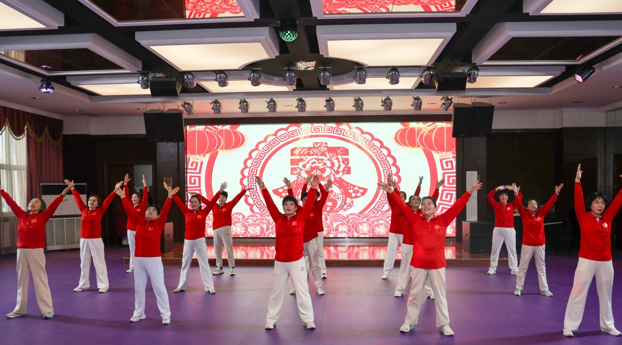 联欢会在热情洋溢的氛围中拉开帷幕。离退休职工管理处在职人员带来歌曲《军港之夜》,拉开了演出序幕。随后,老年大学非洲鼓班表演了充满活力的《爱我中华》,舞蹈班以《我的中国梦》展现新时代风貌,朗诵《老家河南》深情表达对故乡的眷恋。合唱《大海故乡》《又见炊烟》、京剧《绣红旗》、广场舞《绽放》、配乐朗诵《新年你好》、走秀《红玫之约》、合唱《我唱赞歌献祖国》、太极表演《24式太极拳》节目轮番上演,精彩纷呈。老同志们用歌声、舞蹈、朗诵、器乐等多种形式,展现了积极向上、老有所乐的精神风貌,也表达了对伟大祖国的深情祝福。