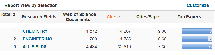 据汤森路透ESI(Essential Science Indicator)数据库最新数据显示, 我校工程学被ESI数据库收录为Top1%的学科。目前我校共有两个学科入选ESI全球Top1%的学科,分别是化学,工程学。