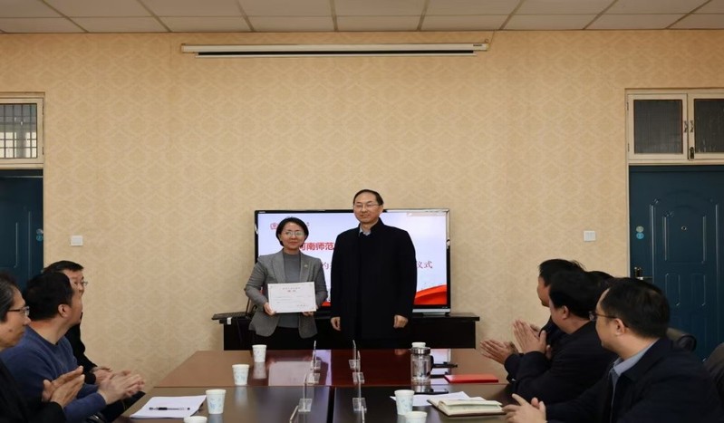 为进一步完善我校图书情报专硕人才培养体系,提升研究生专业实践能力,12月19日上午,河南师范大学图书情报专硕实践基地签约授牌暨校外导师聘任仪式在图书馆九楼会议室隆重举行。河南省图书馆学会副理事长申少春教授、中原工学院图书馆岳修志馆长、郑州西亚斯学院图书馆谢琳慧馆长、河南财经政法大学图书馆郭育艳馆长、新乡市图书馆赵腾涛馆长、郑州市科技发展战略研究所杨勇所长、广州南方万方数据有限公司郑州分公司侯亚娟经理等7家实践研究基地代表出席签约仪式。校党委研究生工作部部长王文豪、图书与档案信息中心党政领导以及教师和研究生代表共40余人参加会议。会议由图书与档案信息中心副主任王瑞珍主持。