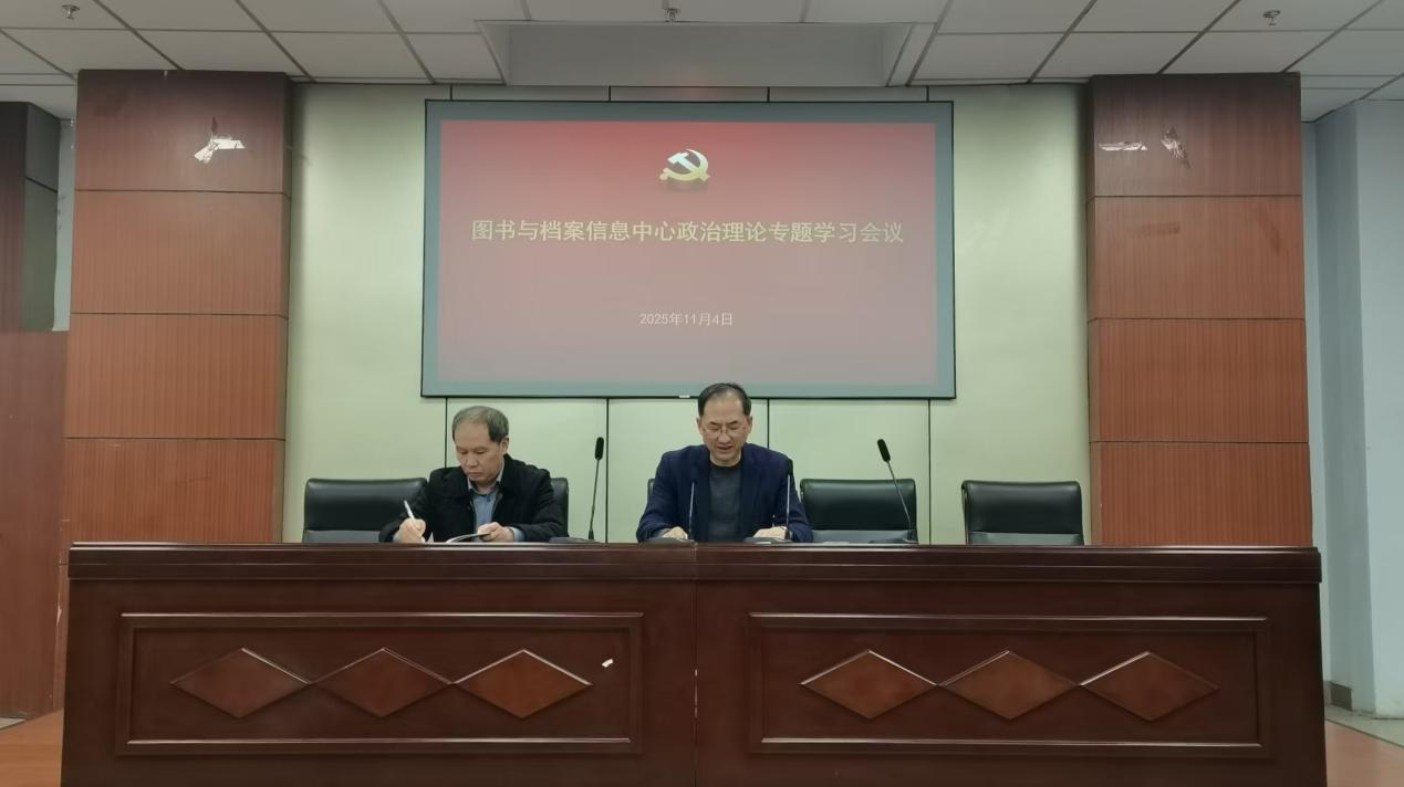 11月4日下午,图书与档案信息中心在二楼会议室召开全体会议,专题学习党的二十届四中全会精神,中心全体职工参加学习,会议由党总支书记王鹏祥主持。