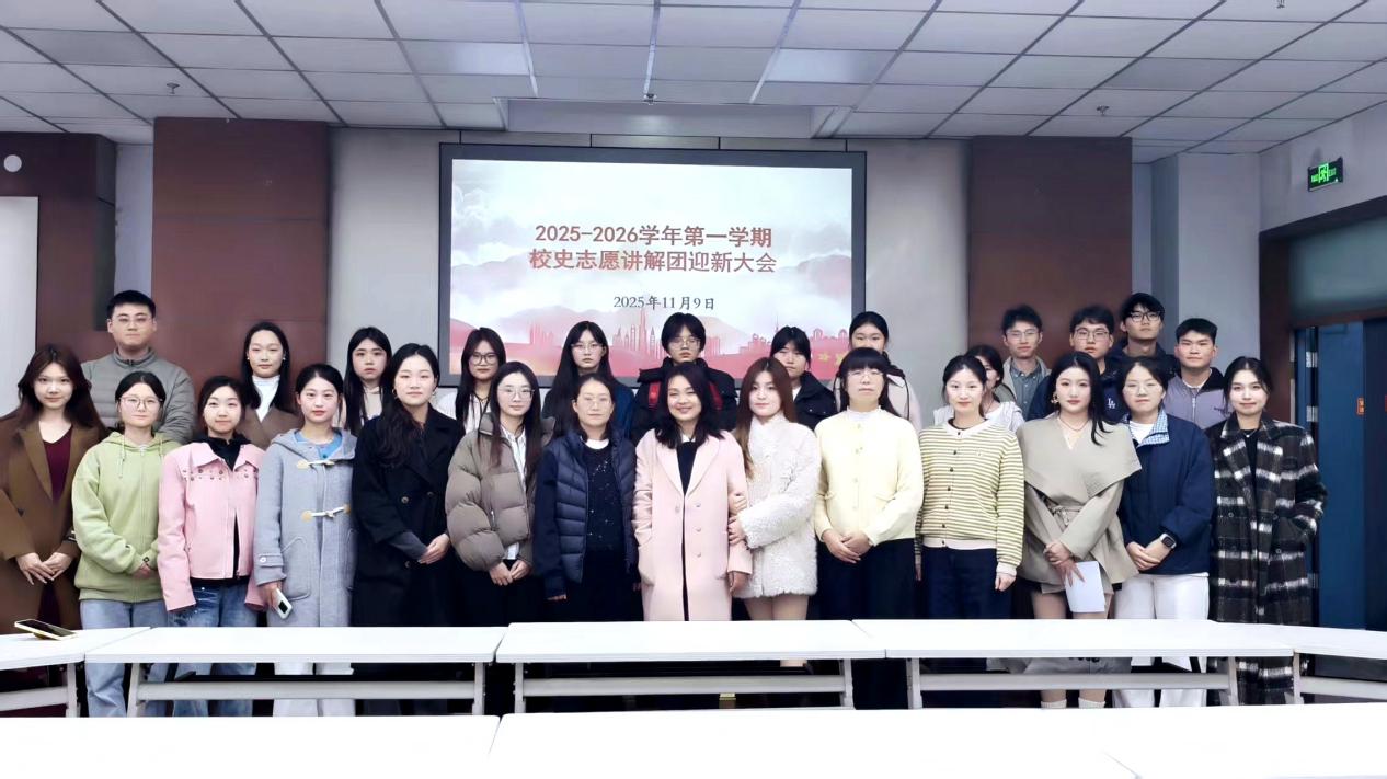 为强化2025届校史志愿讲解团新成员的责任意识与团队认同感,凝聚文化传承力,11月9日晚7时,图书与档案信息中心校史馆在图书馆二楼会议室举行迎新大会。校史馆主任孙伟彦、冯莉老师、往届讲解员代表、2024届讲解团核心成员与2025届全体新成员齐聚一堂,共同参加了本次迎新大会。