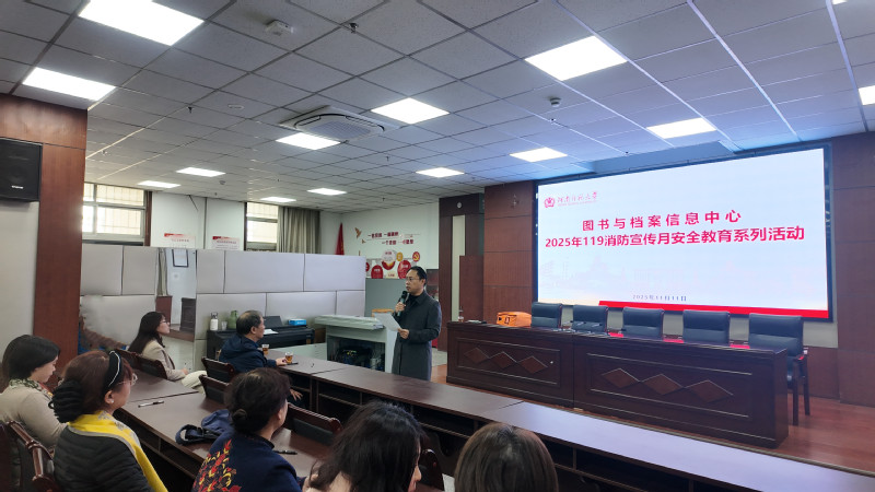 为认真贯彻习近平总书记关于消防安全的重要论述,深入落实 2025 年全国消防宣传月工作要求,图书与档案信息中心于11月11 日下午开展消防安全宣传月教育系列活动。校保卫处消防管理科蔡鹏、李科峰,图书与档案信息中心主任范黎林,副主任王瑞珍、李翔及中心百余名教职员工参与了活动。活动由李翔主持。