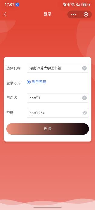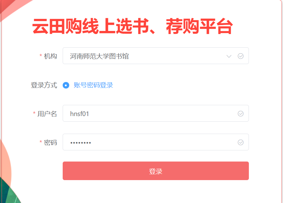 步骤三:输入登录名:hnsf01,密码:hnsf1234,点击提交按钮,成功登录后即可选书。