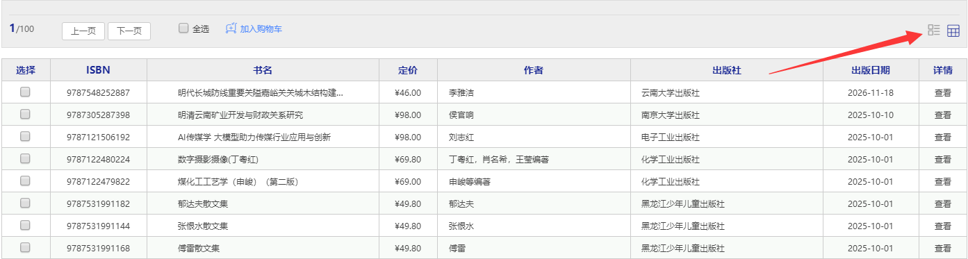 1.1平台可按图书的出版时间、定价排序。也可按价格区间、出版时间段、重点图书【即图书馆关注的重点出版社】进行筛选。