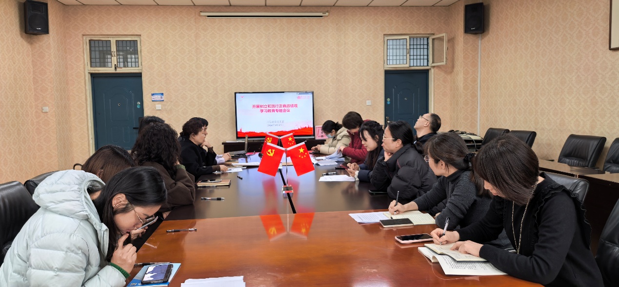 3月20日,图书与档案信息中心党总支开展“树立和践行正确政绩观学习教育”专题学习研讨,中心党总支理论学习中心组、各教工及学生党支部同步完成专题学习,引导全体党员干部筑牢思想根基、校准履职方向,以正确政绩观引领中心事业高质量发展,为学校“双一流”创建和高水平大学建设赋能。