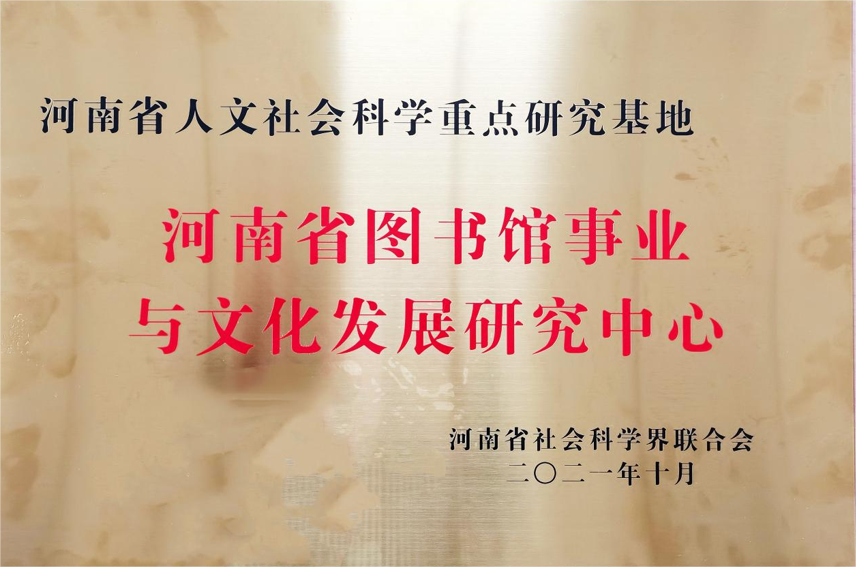 河南省图书馆事业与文化发展研究中心(Research Center for Library and Cultural Undertakings of Henan Province),是2021年经河南省社科联批准挂牌的河南省人文社科重点研究地基(以下简称“中心”),是致力于图书馆事业与文化研究的实体性科研机构。依托建设单位为河南师范大学图书与档案信息中心。前身是2013年成立的校级特色研究基地“图书馆事业与文化发展研究中心”,与2013年成立的校级科研服务机构新乡地方文献整理中心。支撑其发展的学科专业包括我校的图书情报、历史文献学、信息管理与信息系统等。中心自成立以来始终坚持以推动河南省图书馆事业高质量发展为宗旨,秉承“学术研究、人才培养、社会服务”三位一体发展战略,以河南省图书馆事业高质量促进地方文化、社会发展为中心,提出“研究一批课题、汇聚一批专家、培养一批人才”的发展思路。中心围绕特色文献整理与研究、图书馆史研究、图书馆事业与文化发展研究、科技情报与创新服务形成四个特色研究方向,分别聘请李雪山、苏全有等教授为学术带头人。目前中心拥有专兼职研究员30人,国家社科重大项目首席专家1人,博士生导师5人,硕士导师25人,具有副高级及其以上职称者26人,具有硕士研究生及其以上学历者27人,形成了以教授为学科带头人,副教授与博士为中坚力量的科研梯队,初步形成学缘结构合理、年龄结构均衡、职称结构科学的布局。
