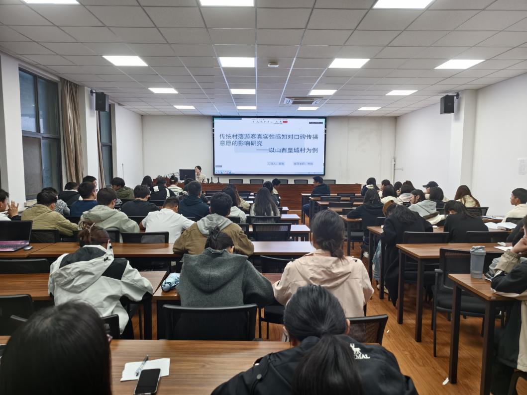 随后,裴育同学以《传统村落游客真实性感知对口碑传播意愿的影响研究——以山西皇城村为例》为题,分享了其在旅游地理与游客行为交叉领域的最新进展。研究基于结构方程模型,验证了客体真实性、存在真实性等维度对游客满意度与口碑传播意愿的驱动路径,并借助质性访谈进一步揭示了地方依恋在其中的中介作用。该研究不仅拓展了真实性理论的本土化阐释,也为传统村落旅游的品质提升与可持续发展提供了实践参考。