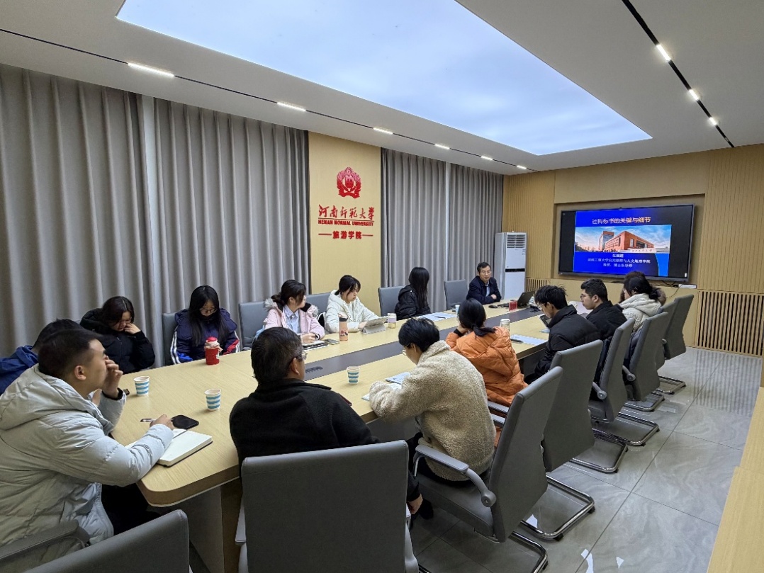 为进一步提升学院师生的学术素养与科研创新能力,营造良好的学术交流氛围,11月20日上午,应地理与旅游学院邀请,湖南工商大学生延超教授莅临学院,在一楼综合教研室作《国家社科基金项目申报的细节把控》专题讲座。会议由学院副院长王二红主持,学院师生20余人参与此次会议。