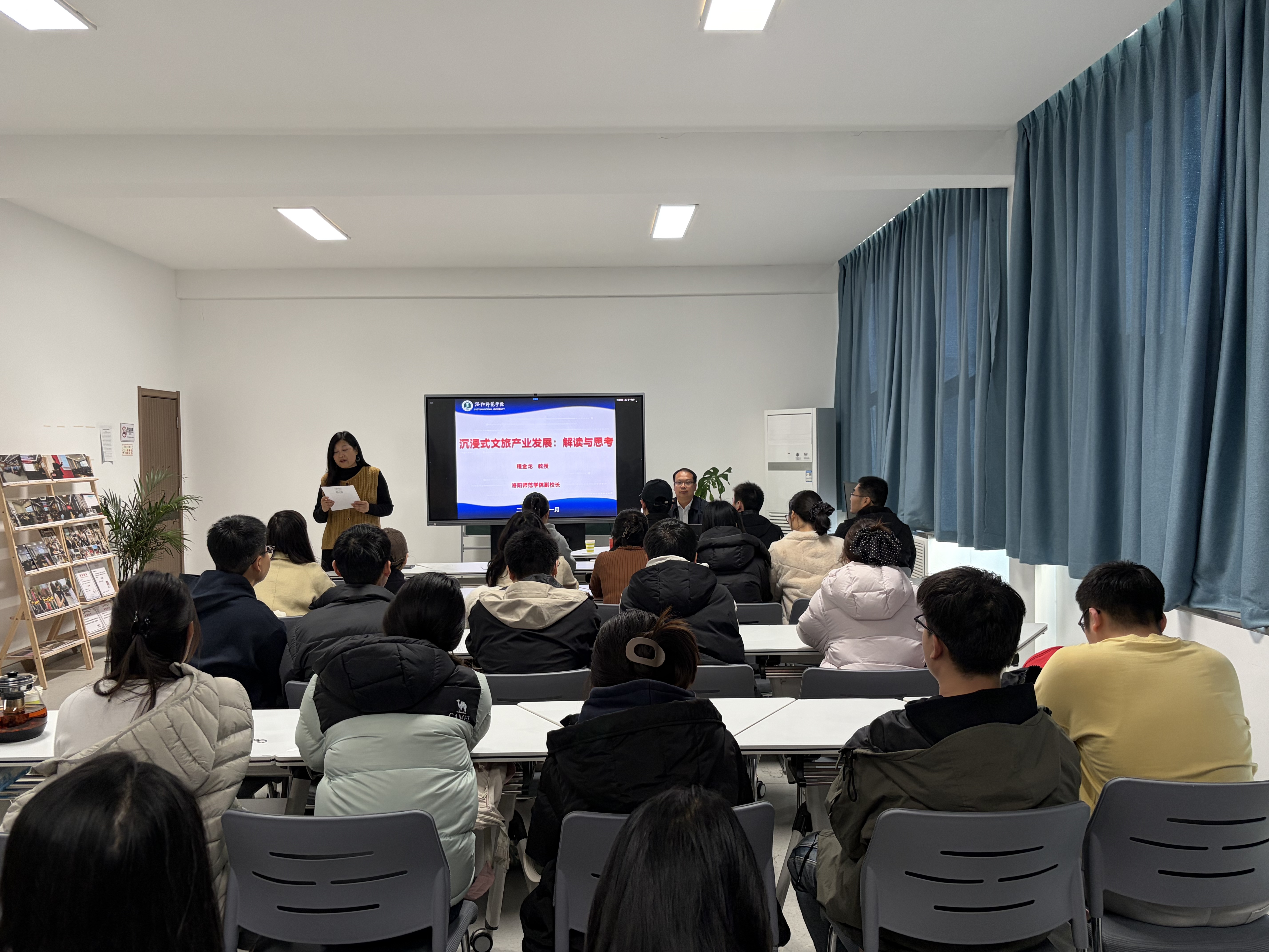 为深化我校师生对文旅产业前沿趋势的认知,推动专业学习与行业实践深度融合,1128日下午,应地理与旅游学院邀请,洛阳师范学院程金龙教授莅临我院,在学院二楼大数据与智慧旅游实验室作题为《沉浸式文旅产业发展:解读与思考》的专题学术讲座。学院副院长王二红主持讲座,学院师生50余人参会学习。