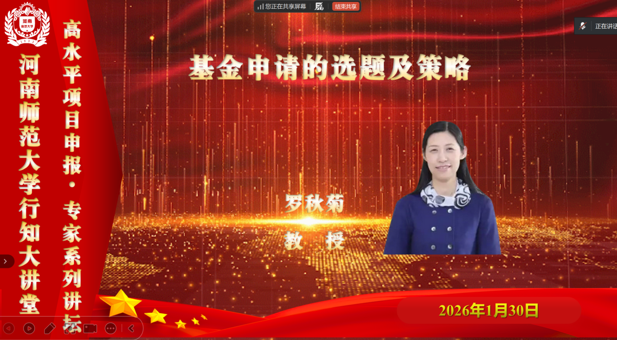 1月30日下午,中山大学罗秋菊教授应地理与旅游学院邀请,为学院青年教师作《基金申请的选题及策略》专题讲座。讲座采取线上形式进行,学院副院长王二红主持会议,多位青年教师参会。