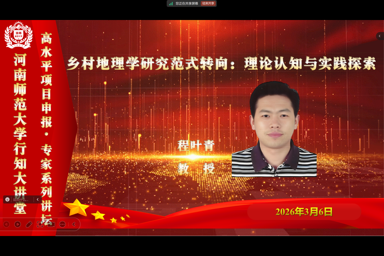 3月6日下午,海南师范大学程叶青教授应地理与旅游学院邀请,特作题为《乡村地理学研究范式转向:理论认知与实践探索》的专题学术讲座。本次讲座采取线上形式开展,由学院副院长王二红主持,学院青年教师、研究生代表共同参会学习,现场学术氛围浓厚。