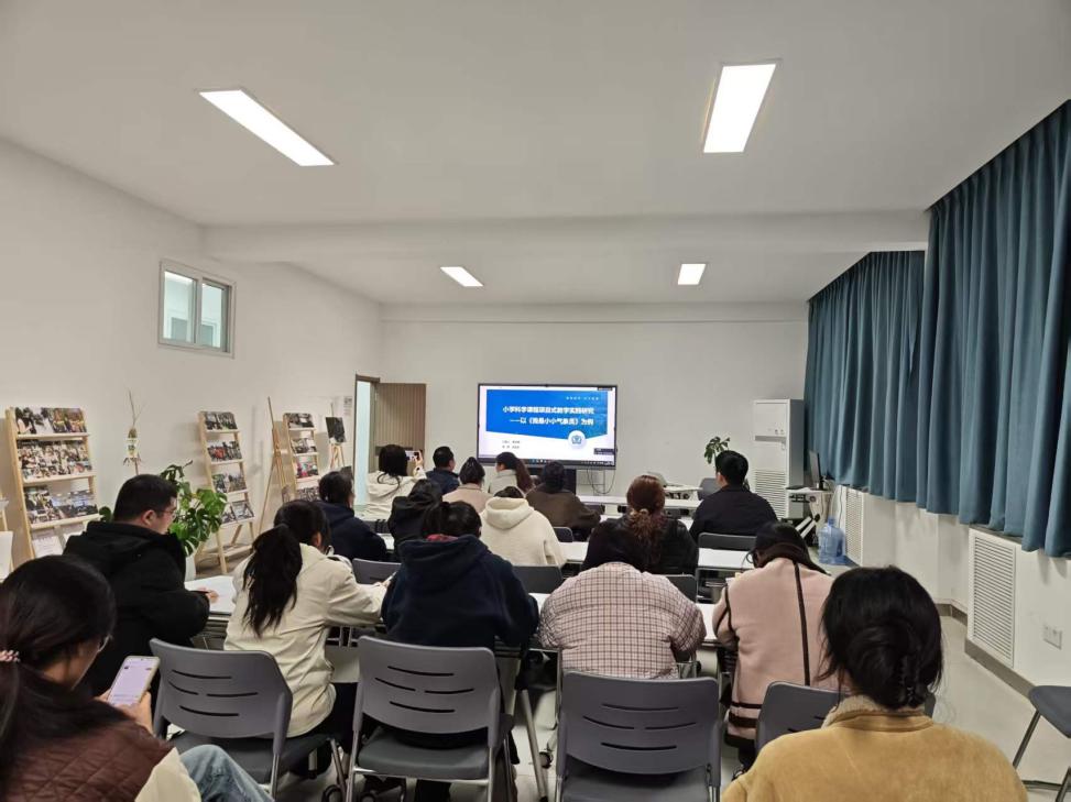 接着,谢冰倩同学以《项目式教学在小学科学教学中的实践探索——以<我是小小气象员>为例》为题进行汇报。该同学基于项目式学习理论,针对小学科学教学中存在的问题,设计并实施了以“天气观测”为主题的项目式教学案例,涵盖项目发布、气温与降水测量、风云观测、天气日历制作等环节。通过问卷调查、学生访谈和课堂观察等方式,验证了项目式教学在激发学习兴趣、提升合作能力、培养实证意识等方面的显著成效。该研究为小学科学教学改革提供了可操作的实践路径与实证支持。