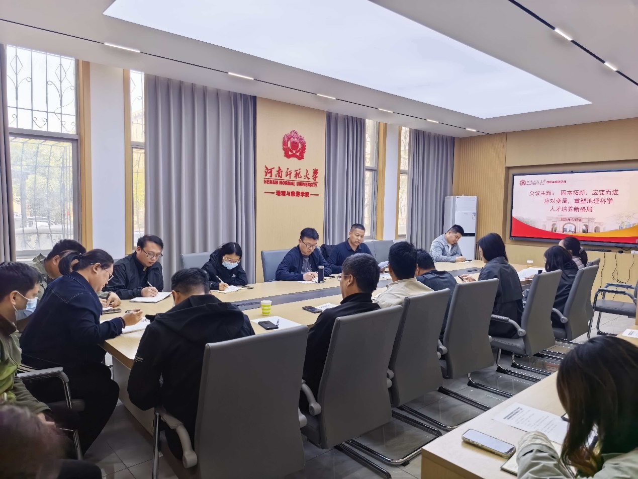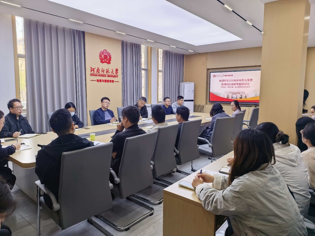 4月7日下午,我院在学院会议室成功召开地理科学2026本科培养方案暨教师知识更新专题研讨会。本次会议以“固本拓新,应变而进——应对变局,重塑地理科学人才培养新格局”为主题,旨在主动应对高等教育与就业市场的新挑战,系统优化人才培养体系,推动教师知识结构更新,促进地理科学专业内涵式发展与转型升级。学院党委副书记孙晓、教学院长付强、地理科学系主任雒海潮、支部书记翟洲燕、空间智能教研室主任韩立钦及全体专业教师参会,会议由教务员王金霞主持。