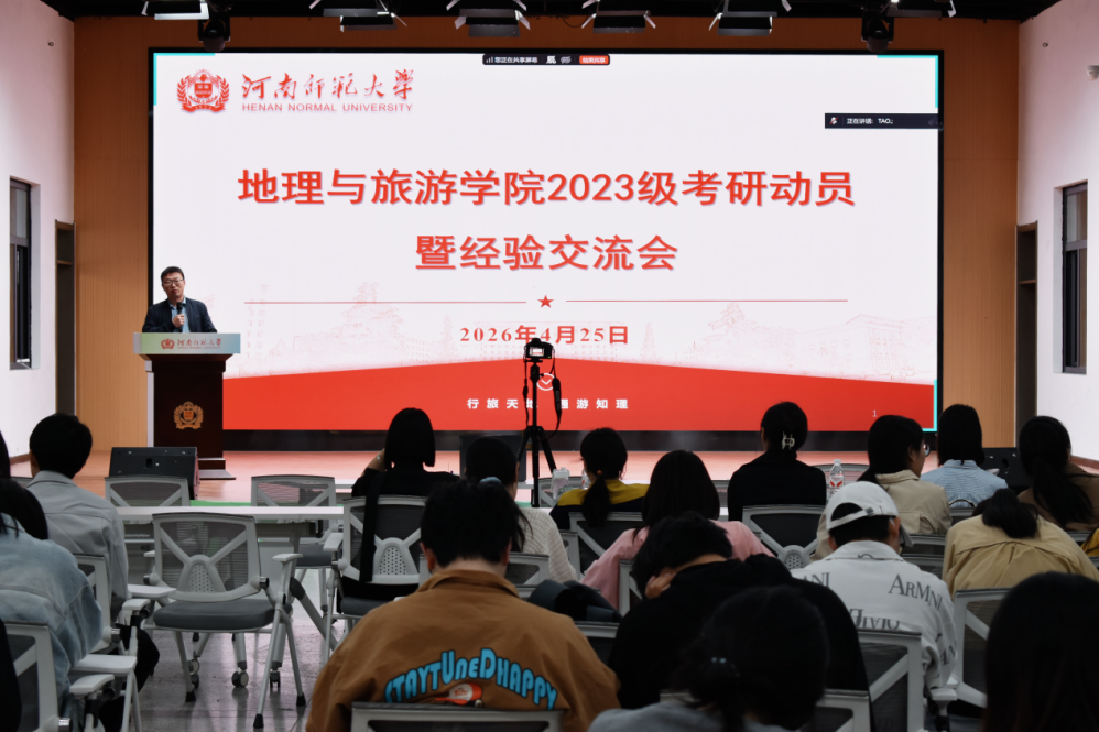 4月25日上午,地理与旅游学院在青益空间举办了2023级考研动员暨经验交流会。院党委副书记孙晓、2023级班主任和全体在校学生现场参会,在外实习学生线上同步参加。会议由2023级辅导员黄昭主持。
