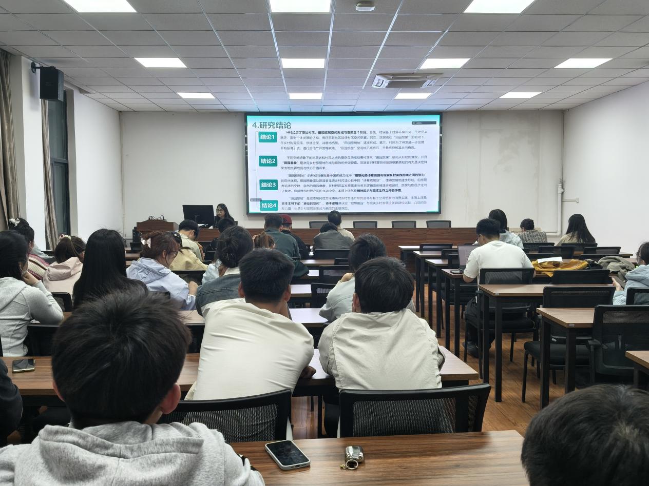 首先,吴萧纹同学以《节事吸引力感知维度研究》为题进行了汇报。该研究聚焦节事吸引力感知的核心维度,探究不同维度对节事发展的影响,为节事活动的优化升级提供理论支撑。随后,鲁梦圆同学汇报了《基于“空间想象”的消费:乡村“田园旅居地”的形成与衰败机制研究——以河南省新乡市H村为例》。该研究围绕乡村田园旅居地的发展历程,剖析其形成与衰败的核心机制,为乡村旅居产业发展提供参考。最后,卜甲同学汇报了《生态系统文化服务视角下城市文体旅融合发展的供需关系研究》。该研究立足生态系统文化服务视角,梳理城市文体旅融合发展的供需现状,为二者供需平衡发展提供思路。