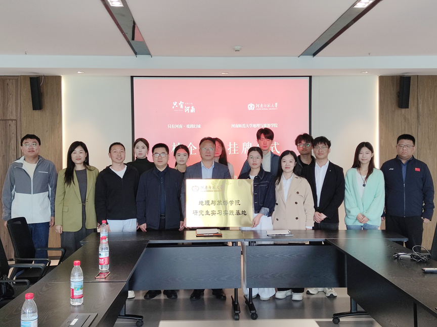 4月16日,研究生院副院长于飞、实践管理科科长杨明国、地理与旅游学院冯峰书记、副院长王二红与实习研究生等一行12人赴只有河南·戏剧幻城交流座谈并举行“地理与旅游学院研究生实习实践基地”揭牌仪式,只有河南·戏剧幻城招聘经理许煜晨、人力行政总监高阳阳、人事经理冯哲、招聘主管李颖颖等相关负责人共同出席会议,会议由冯哲主持。