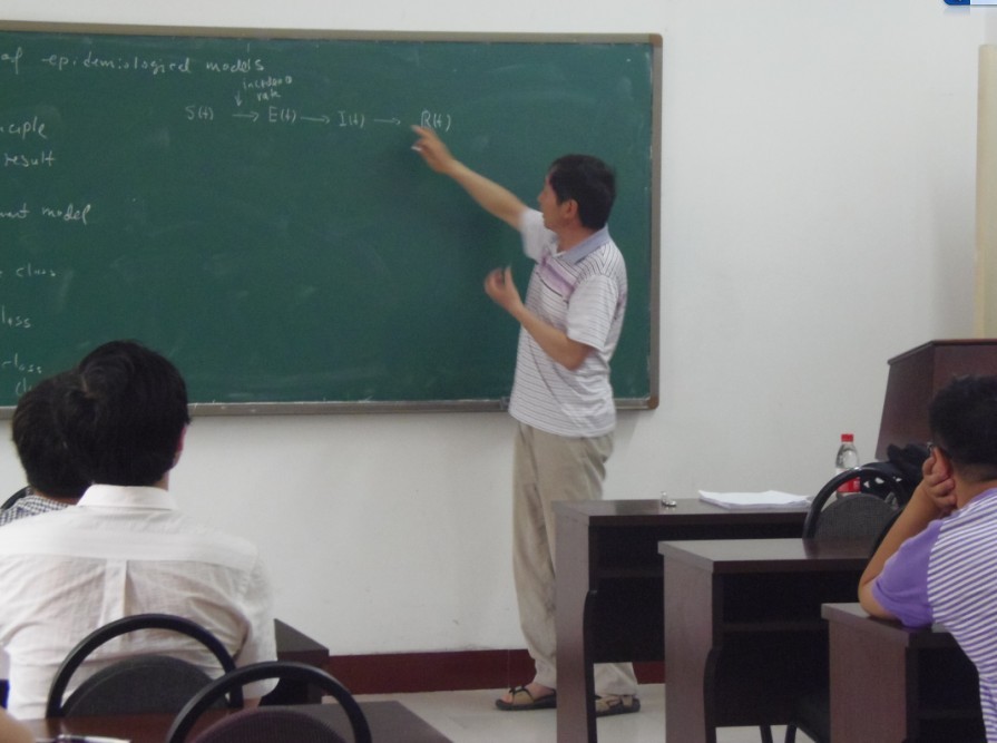 程远纪教授首先介绍了流行病的几个常见数学模型,然后从三个方面阐述了与之相关的动力系统的全局稳定性问题。他针对分离模型利用全局稳定性原理得到了一个全局稳定性结果。讲座期间,程教授用通俗易懂的语言把复杂的流行病学数学模型认真耐心的介绍给大家。