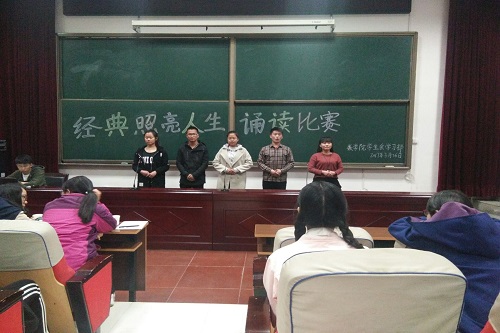 一首诗,传承千年文化;一篇文,照亮成长之路。2017年3月26日,数学与信息科学学院在我院多功能报告厅举办了"经典照亮人生"诵读比赛决赛。活动旨在传承经典,弘扬和培育以爱国主义为核心的民族精神,给大家提供一个展现自我、提升自我的机会和舞台,培养我院学生高雅情操。其中团委副书记吴小林作为评委出席此次活动。