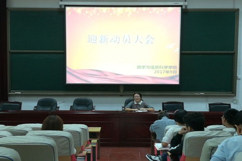 为确保2017级迎新工作安全有序进行,9月5日,数学与信息科学学院于院多功能报告厅召开2017级迎新动员大会,院团委副书记吴小林、2017级辅导员刘久凌应邀出席本次会议,我院学生会全体成员及2016级各班班长和团支书参与其中。