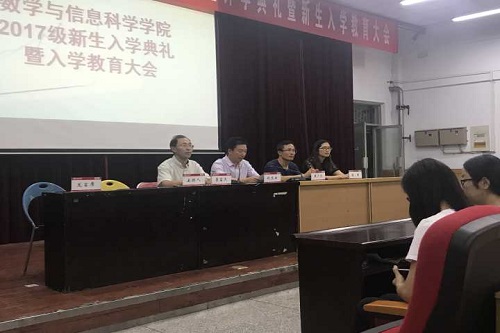 才华横溢缘定今宵,格物致知梦起师大。9月19日晚,数学与信息科学学院于万人餐厅三楼多功能报告厅举办2017级新生开学典礼暨入学教育大会。我院党委书记刘文安,党委副书记李富杰,副院长黄广月,张瑾,各年级辅导员,班主任,任课教师以及2017级全体新生出席本次典礼。