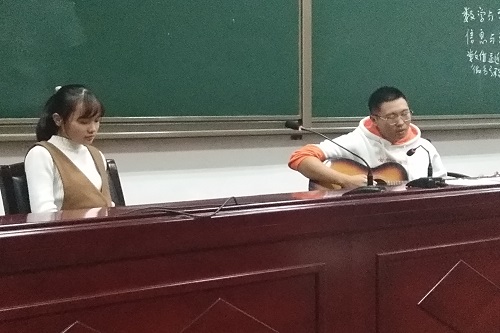 10月19日晚,17级数学五班在数学院多媒体报告厅举办班级联谊活动。班主任梁彦超出席活动并发表重要讲话。全班同学积极参与,并进行多才多艺的自我展示。