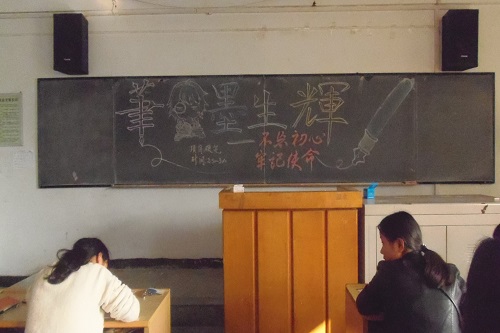 此次大赛以献礼十九大为目的,以“少年强则国强”、“民族自豪感”、“牢记使命”为主线,共分粉笔组、硬笔组,毛笔组及绘画组四组进行。从色彩丰富、创意独特的展板宣传到参赛作品的征集等各进程中,各班学生积极参与,精心准备,彰显昂扬、奋进的青春姿态。在作品评选阶段,经过公正选拔,层层筛选,各组的优秀作品脱颖而出,其中学生阴梦园的书法恢弘大气,用笔苍劲,获得书法组全能奖一等奖;学生赵子玥用一幅经霜傲雪的梅花突出本次活动的主题—“献礼十九大”,象征了共产党人坚强不屈的精神面貌,获得绘画组一等奖。至此,本次大赛在浓厚校园文化的氛围中圆满落幕。