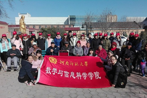携手温情,关爱老人。 12月17日 ,数学与信息科学学院团委学生会实践部组织三十二名志愿者乘坐公交车,一起前往好佳老年护理院,在凛冽寒冬为老人送去温暖和关怀。