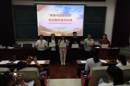 为热烈庆祝中华人民共和国建国70周年,增强学生爱国爱党意识。9月26日中午,数学与信息科学学院在数学楼多功能报告厅举办的“青春与历史对话”党史国史宣讲比赛。学院团委负责人刘久凌出席本次比赛,18、19级部分团员参与其中。